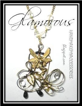 My handmade wirings inspired by Edynae, with a vintage oval prism with gold trimmings, and a glittery ballerina, and wired spirals, comes with a black rhodium chain with silver and black tarnish resistant wires!
