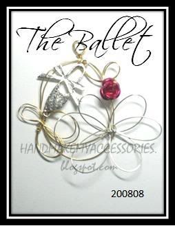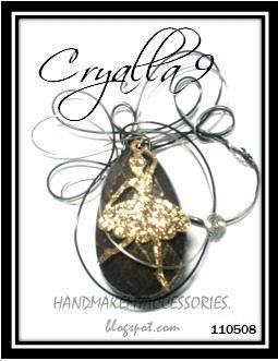A ballerina glitter charm, with black wires, if you notice, the background is a large wired flower and in the center is the ballerina. (: and swarovski bicone crystals! (: